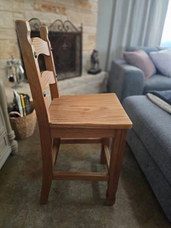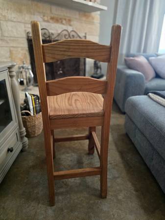 Four all wood barstools. Solid and could be painted to match your decor or used in a farmhouse style home. Hard to find four just alike and in very good condition. I will split them in pairs for $150 or all four for $225. Am considering chalk painting them but would rather not add any more work to my list. If the ad is up they are available. If interested give me a time to pick them up and I will send you the address. Between Jarrell and Salado.